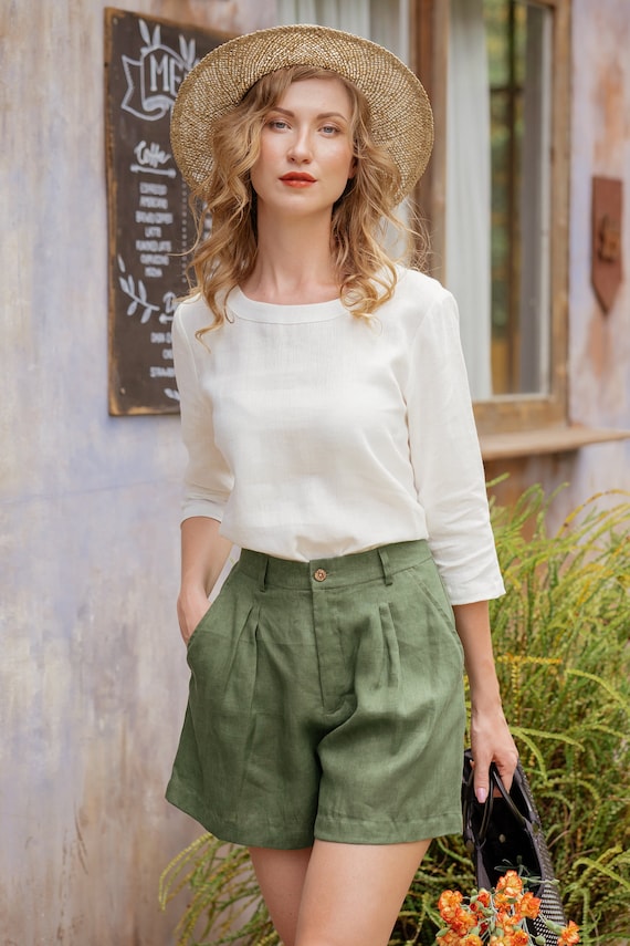 pantalon corto de lino mujer